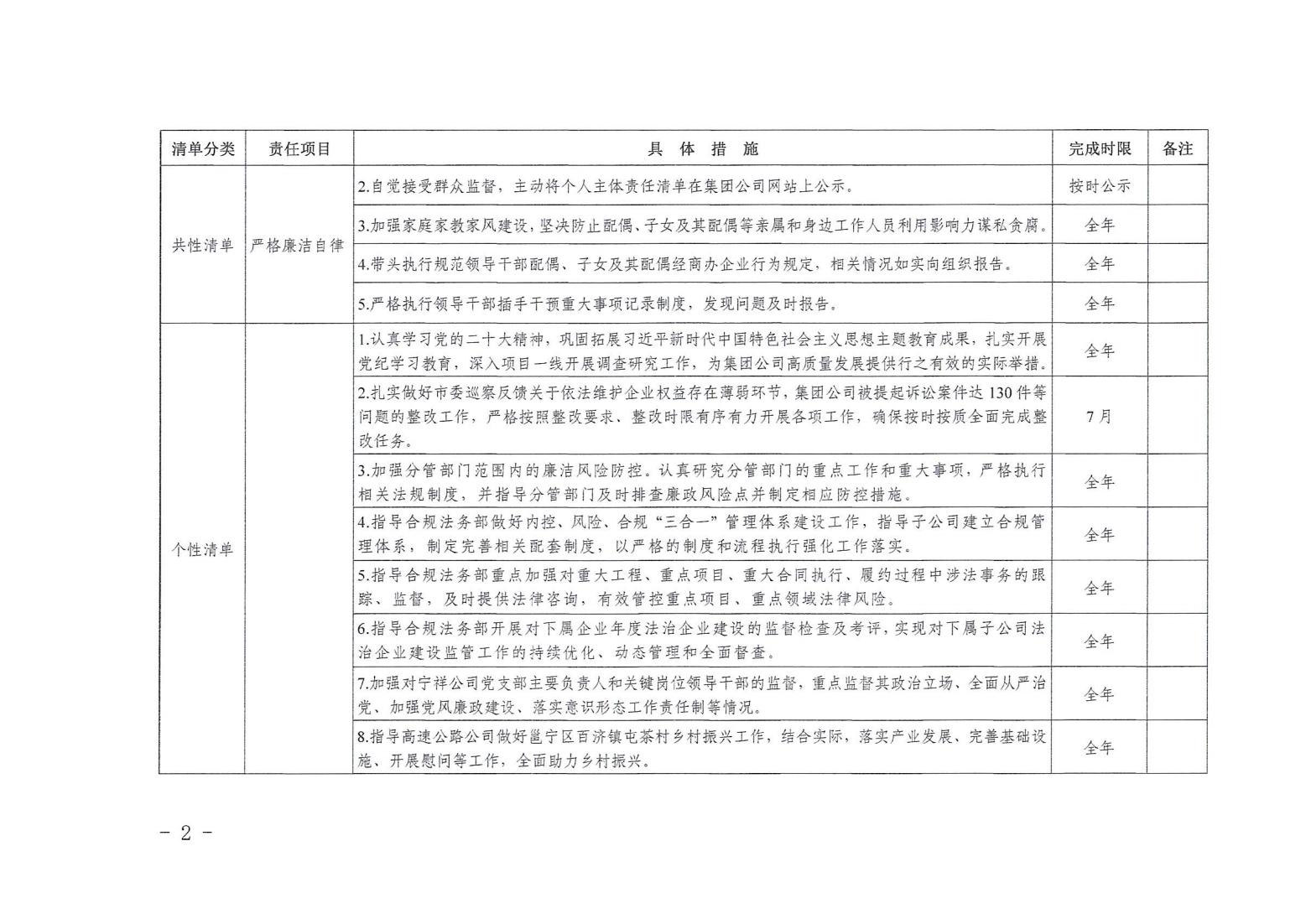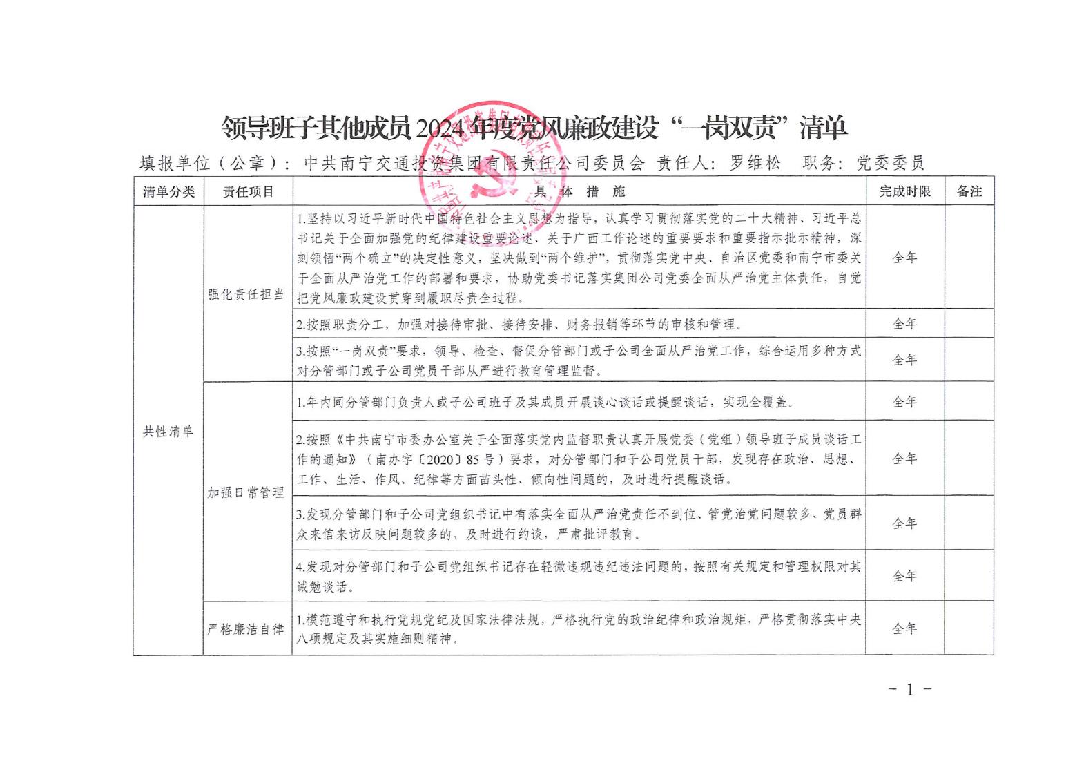 領導班子其他成員2024年度黨風廉政建設“一崗雙責”清單(五)