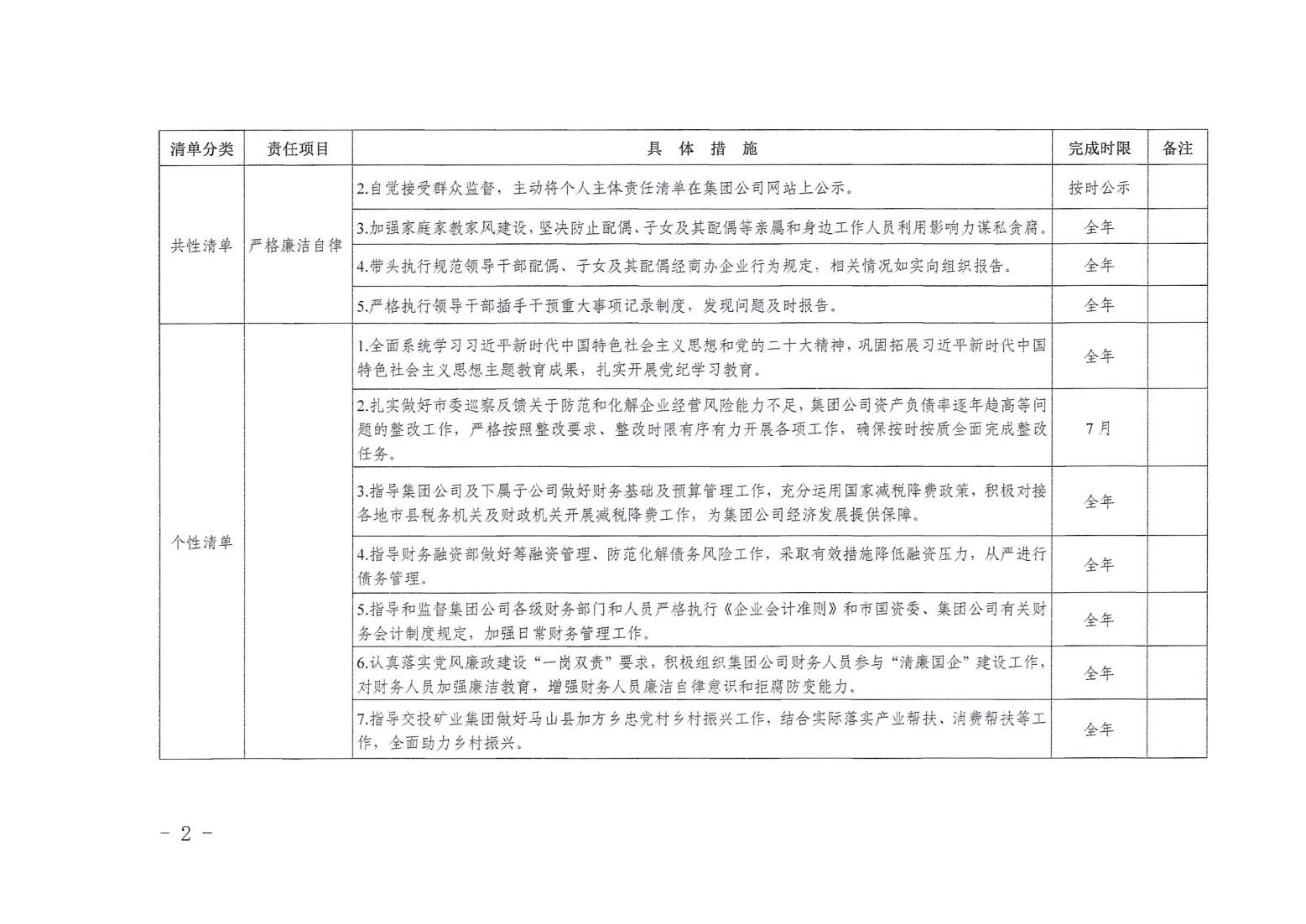 領(lǐng)導(dǎo)班子其他成員2024年度黨風(fēng)廉政建設(shè)“一崗雙責(zé)”清單(六)