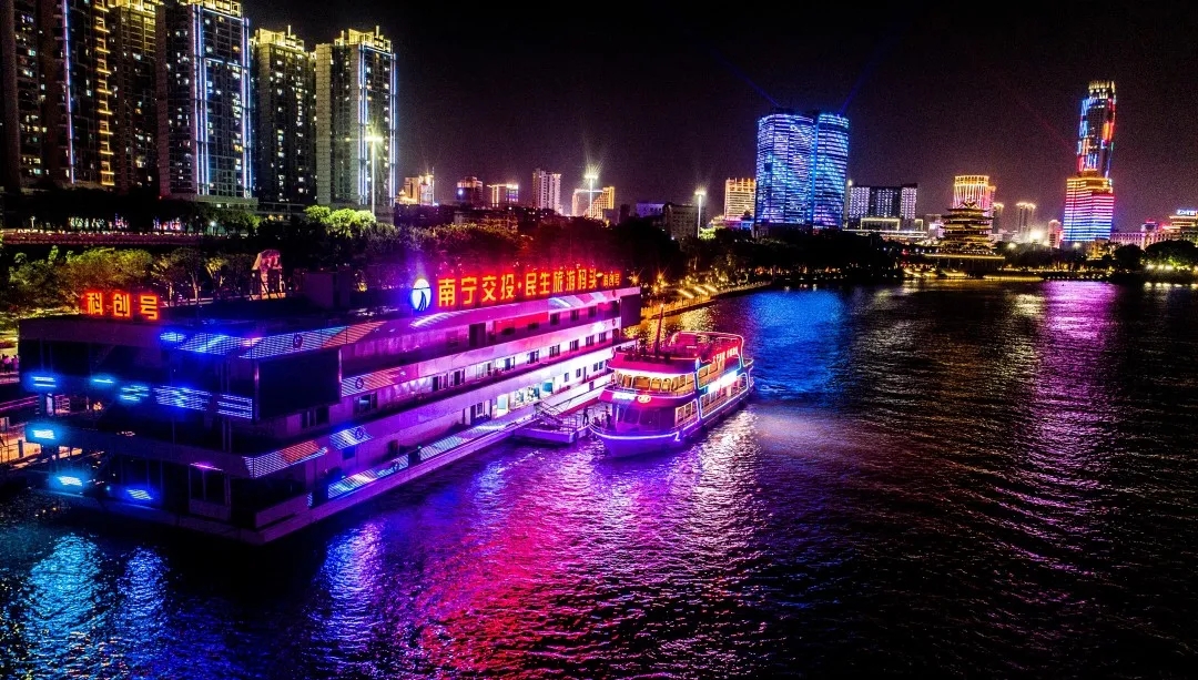 “五一”期間,旅發(fā)公司不僅全班組上崗,同時開放運營民生旅游碼頭和孔廟碼頭,并根據(jù)客流量在晚間客流高峰期靈活增開多個航次,以滿足游客游覽需求。民生旅游碼頭航線途徑暢游閣、壯族神話浮雕、文化長廊等城市中心區(qū)域,展現(xiàn)邕城繁華風貌;孔廟碼頭航線途徑南寧大橋、萬達茂、廣西藝術(shù)中心等五象核心區(qū)域,帶領游客感受新城都市韻律。