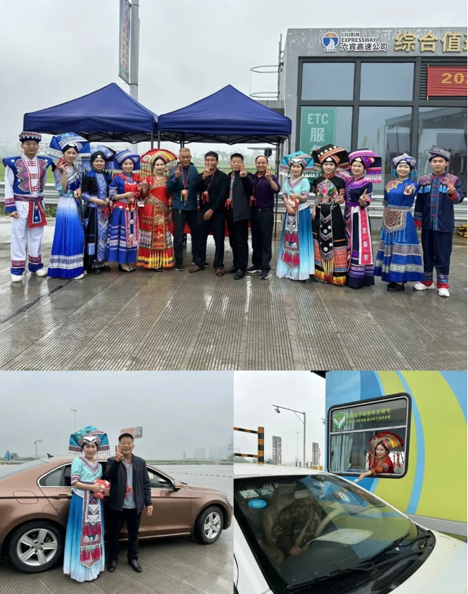 在六賓高速賓陽(yáng)南收費(fèi)站,六賓高速公司的志愿者們身穿民族特色服裝,化身高速公路上的“阿哥”“阿妹”,在提供出行服務(wù)的同時(shí),為過(guò)往司乘人員送上了滿(mǎn)滿(mǎn)的祝福以及具有民族特色的繡球、香囊,形成收費(fèi)站上一道靚麗的風(fēng)景線(xiàn)。